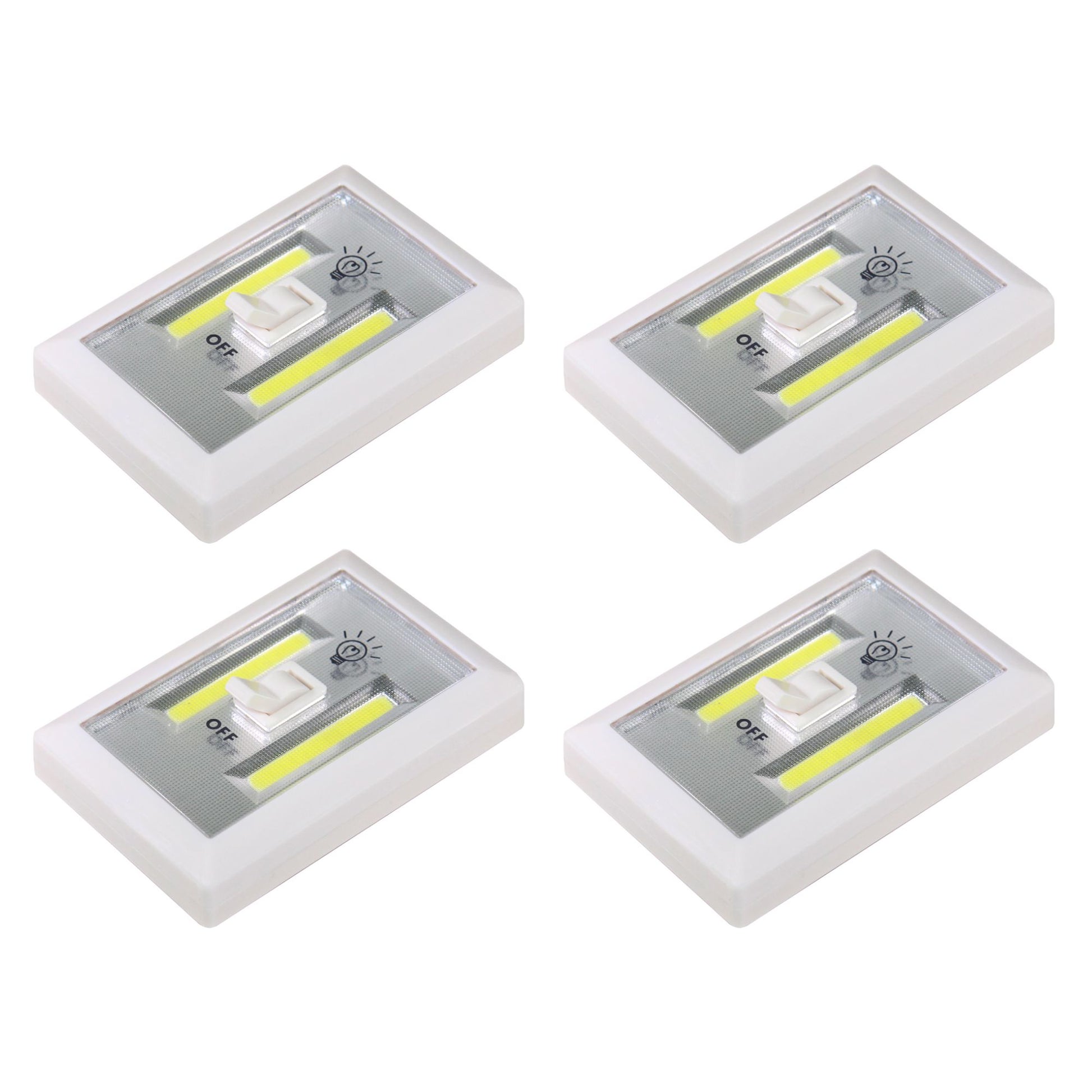 4-Pack COB LED Light Switch – Battery Operated, Wireless Stick-On Wall Lights, Tap Light for Closets, Cabinets, Garage, and Emergency Use