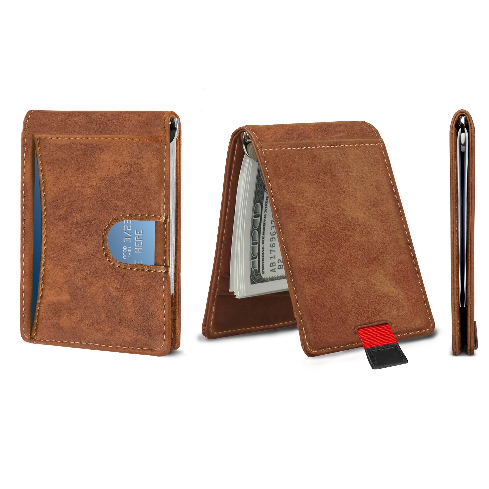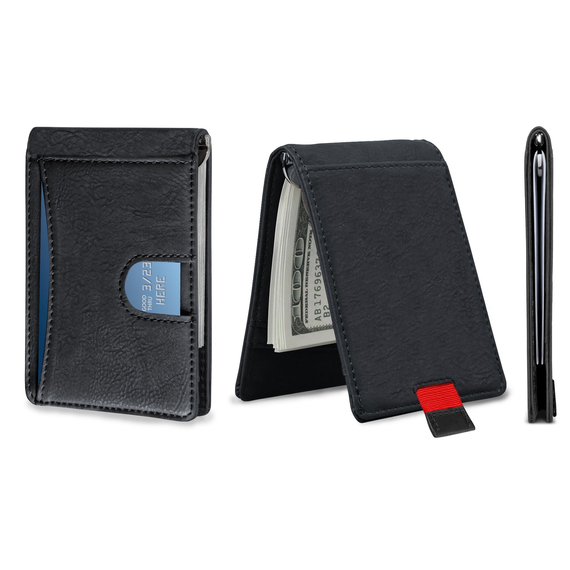 Ciana RFID Blocking Slim Bifold Leather Minimalist Front Pocket Wallets For Men with Money Clip
