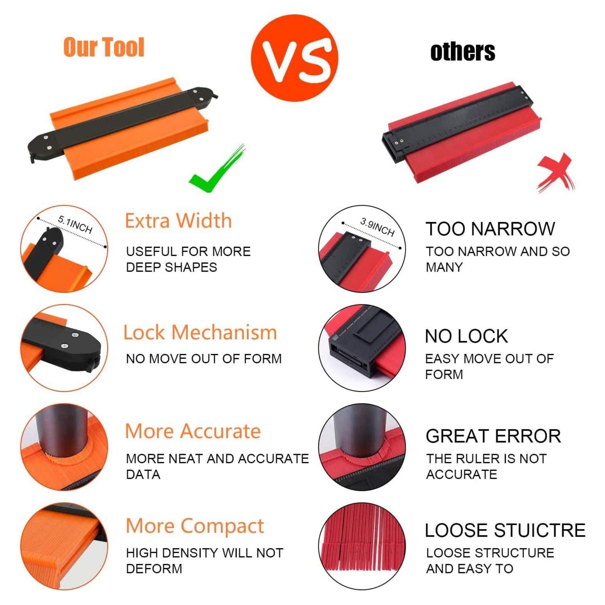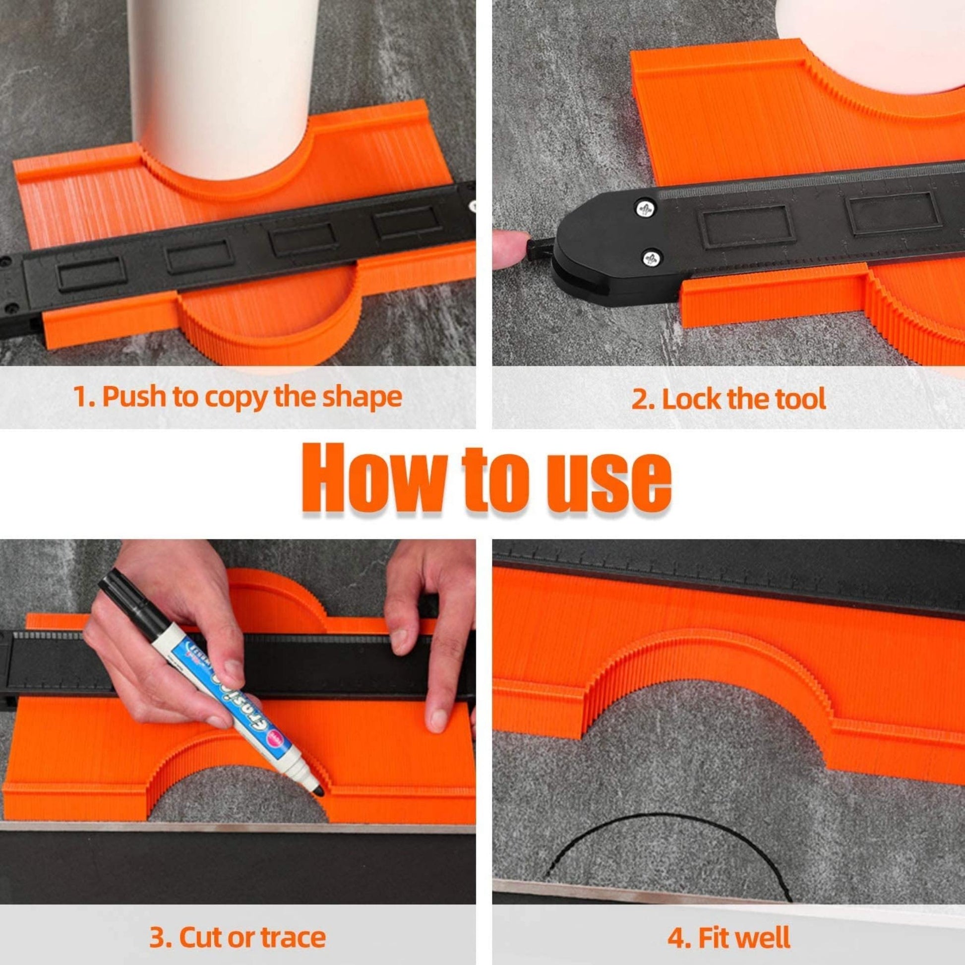 Contour Gauge Tool for corners makes cutting and measuring become easier. With the easy-moving needles, it can perfect shaping the odd shape, curves, irregular corners, contours to laminate, carpet, wood board, tiles in woodworking project, construction, home decoration or renovation and DIY project.