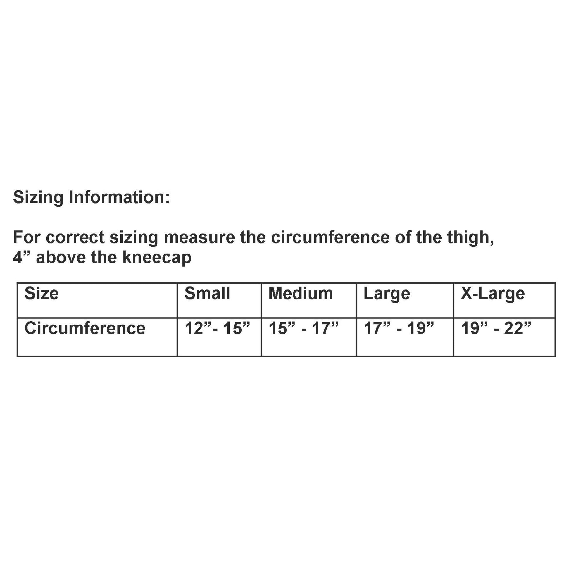 To find a correct size, measure the circumference of the thigh, 4’’ above the kneecap.