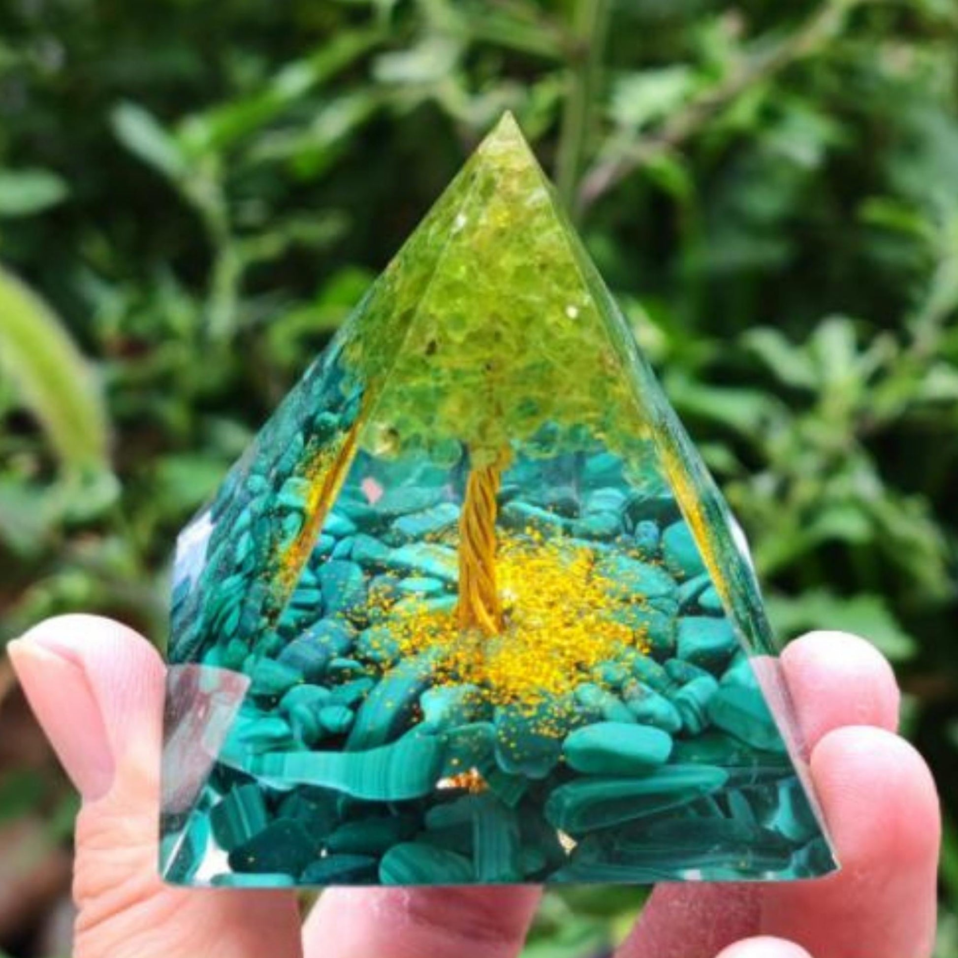 The Orgone Pyramid is genuine material made of healing crystals chips, copper wire, crushed copper, resin etc.