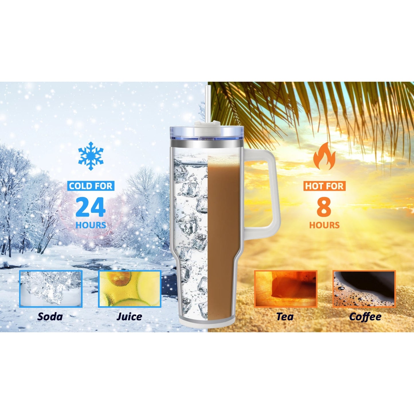 Large Capacity: With a 40oz capacity, it’s perfect for long commutes, extended outdoor activities, or busy days at work.