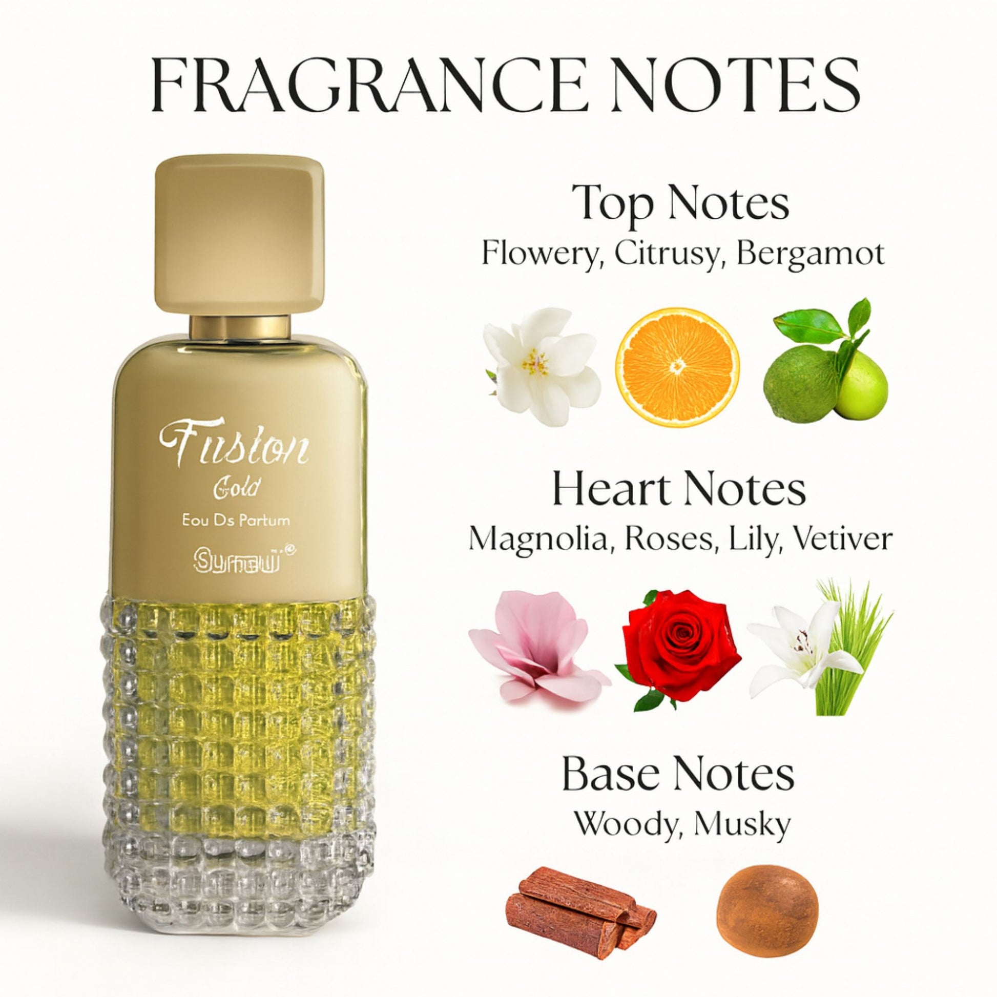 Surrati Fusion Gold 3.4 FL.OZ Perfume for Men and Women - Rich Smooth Aroma Long-Lasting Wear Luxury Scent