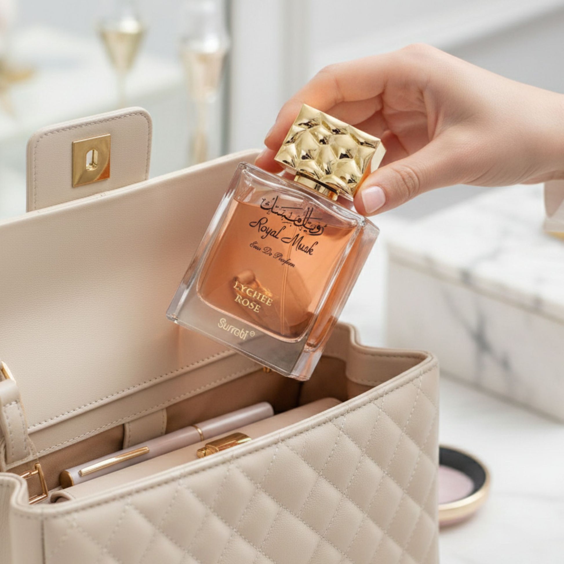 Signature Surrati Craftsmanship – Showcases Surrati’s dedication to quality, blending tradition with contemporary scent design for a premium fragrance experience.